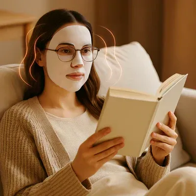 Relax for 30–60 minutes as the mask infuses your skin with collagen, peptides, and hydrating actives.